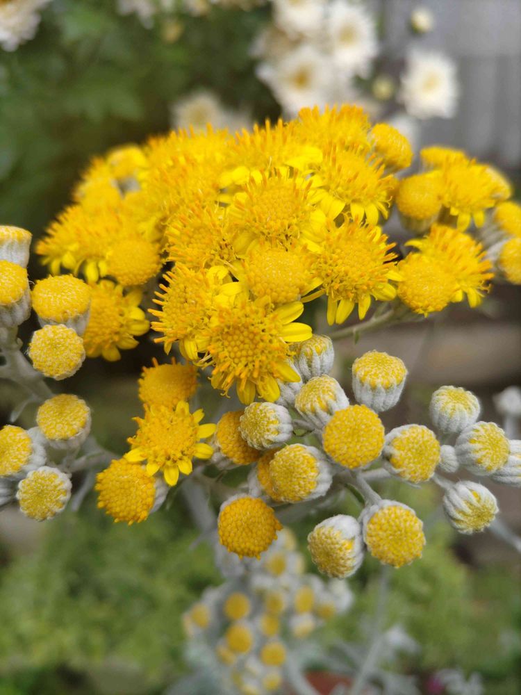 2年目のシロタエギクのお花が咲いてます💕