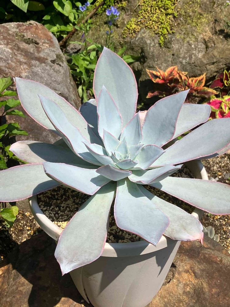 春に根張り鉢(願望込めて7号)に植え替えたカンテ様✨こちらで綺麗に育ててらっしゃる方に教えてもらった通りにやってみましたが、大きくなってます💕+.(*`・∀・´*)゚+.゚💕この青白いのがたまらない⤴️