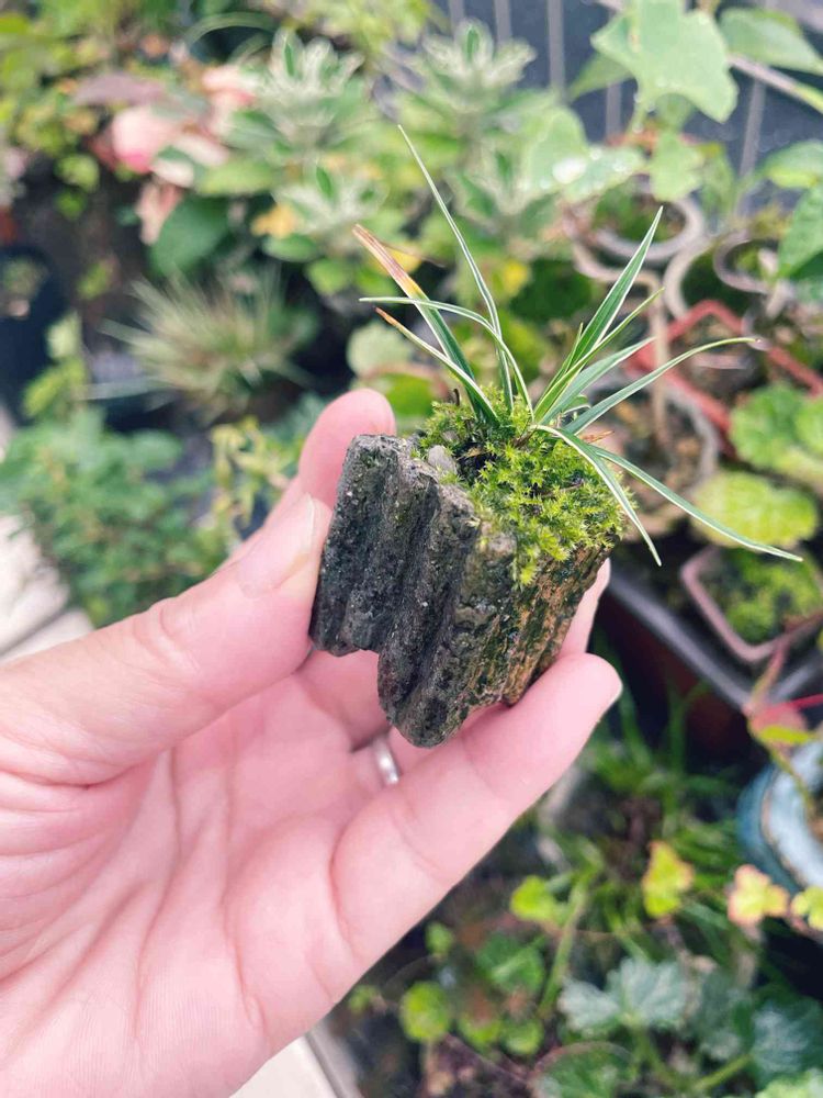これは斑入りカンスゲ七輪陶芸の鉢に入れて苔も元気になってきましたー