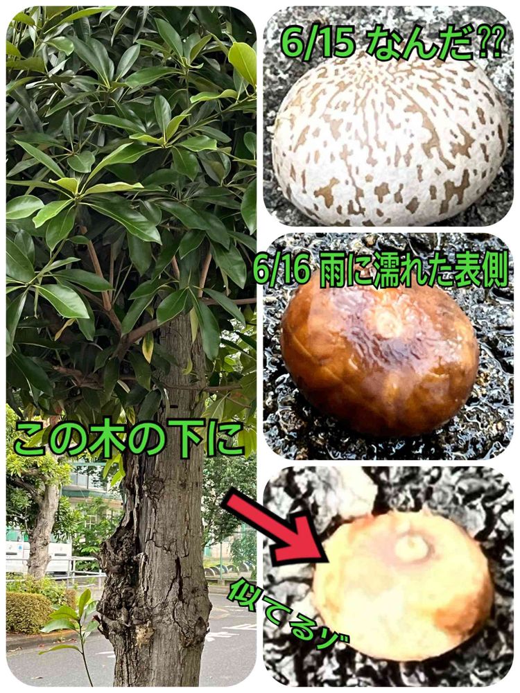 キノコらしき物はまったくわかりませんが、左手の木はマテバシイではないかと思います。😅