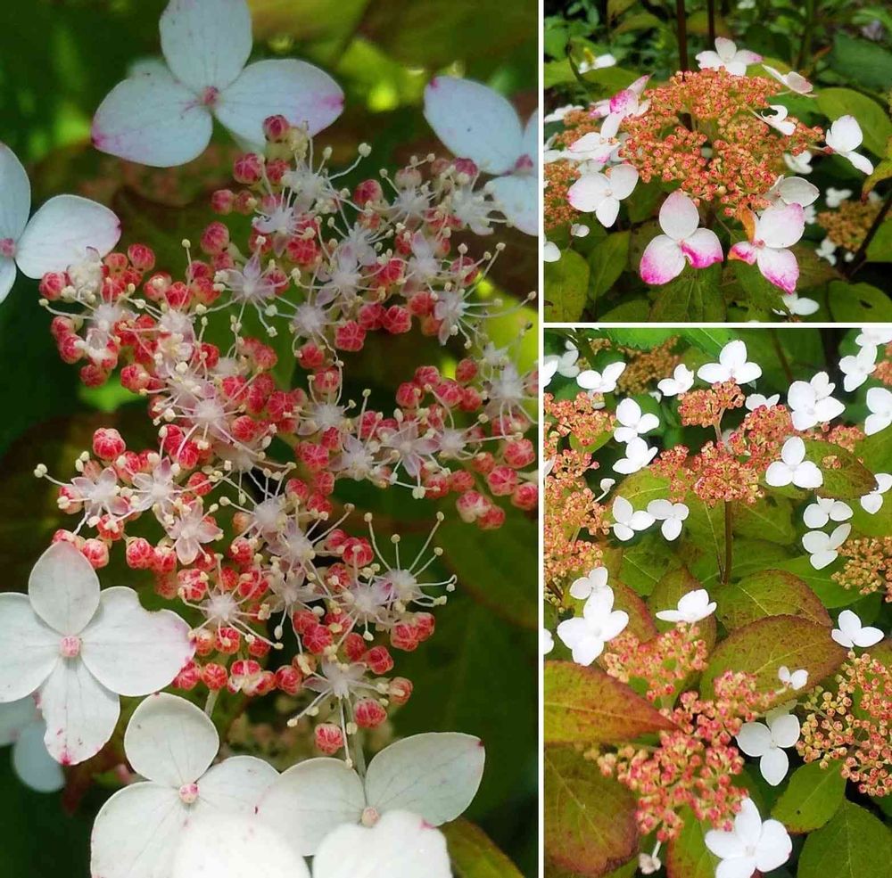 ヤマアジサイ紅が咲き始めました。白い装飾花がこれからピンク、そして深紅に変化していきます。色の変化が楽しみ✨🤍🩷♥️🌿