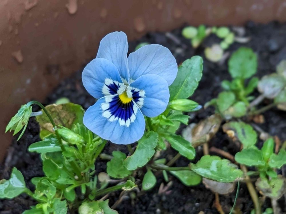 さん、カラー褒めてくださりありがとうございます(◍•ᴗ•◍)お花屋さんで一目惚れしてお迎えしたこの名もなきパンジー。なんと半年以上も草姿を乱すこともなく次から次に花を咲かせて楽しませてくれたんです。それだけにこぼれ種から芽吹いているのを発見した時は嬉しくなりました✨