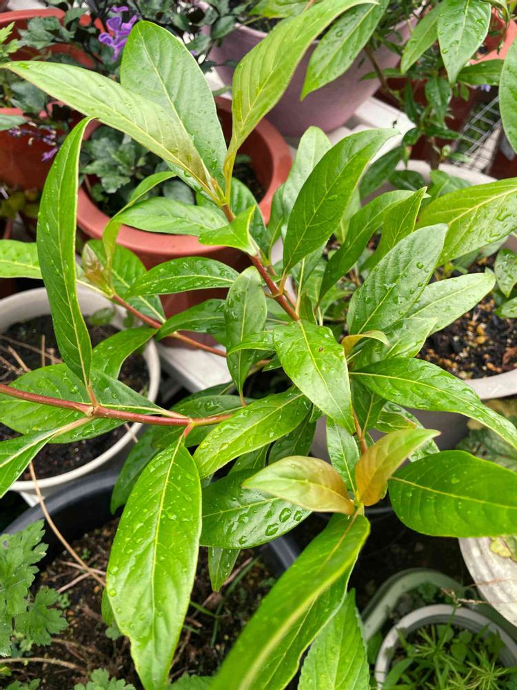 令和5年7月1日(土)🌫️🌫️曇り🌫️雨あがり🌫️ おはよー^_^ございます 1年を前半後半に分けたら🤔後半初日 線状降水帯が九州にかかって北上する予想が出ています 皆さんご安全に🧐🤨 picは2022 年末に花もない紅葉🍁した葉に衝動買いした アッサムニオイザクラです 半年間 作業出来ず放り出します😖