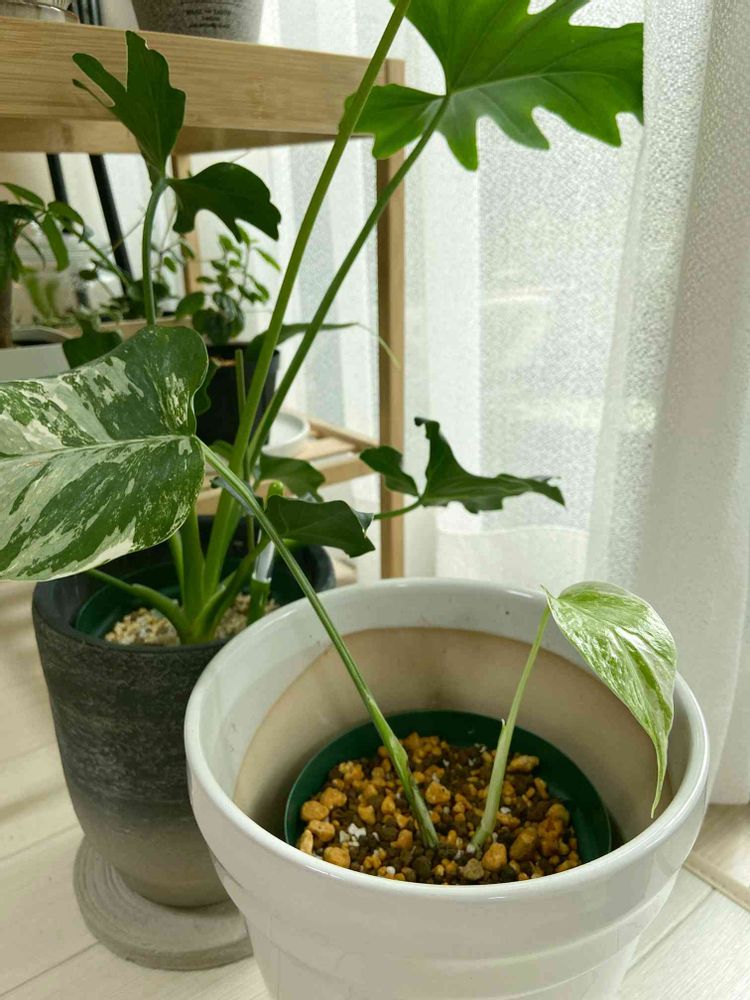 2025.8月に某サイトで購入した【アロカシア チャイ】の 突然変異?なんだろう 購入時、元々有った葉を(1枚目の葉)として、 下から新たな葉が出てきてる状態で到着しました(2枚目の葉) こちらに来て初めて出てきた葉に異変が。。 育て始めて出てきた初めての3枚目、4枚目 (途中から、斑1、斑2、、と続きます) どこまでこの謎の斑入葉が続くのか、 いや止まるのか……記録していきます