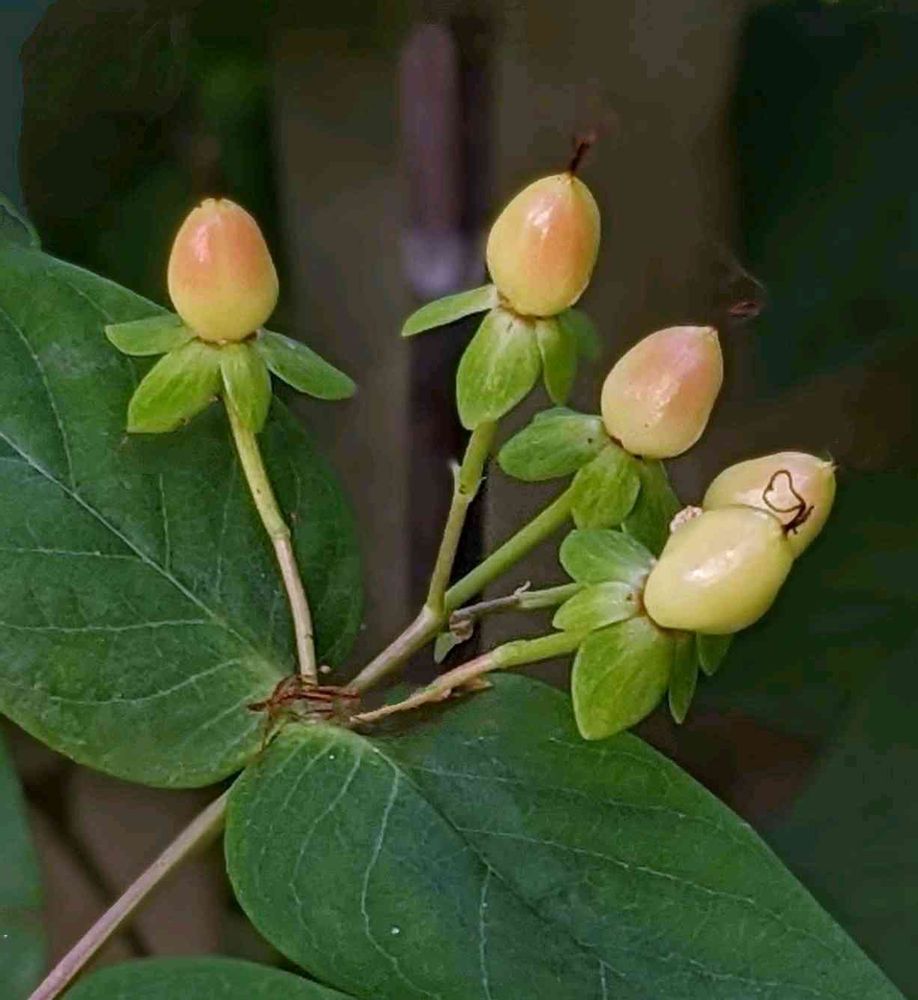 実はいつも一緒に咲く未央柳は満開なのに こちらは今年は木が駄目になってしまったと思っていましたが 僅かに葉っぱが出ており その先を刈り進むと何とこの実が現れました 可哀想にお花を見てあげず…になってしまいました