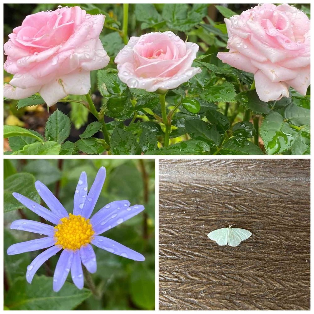 ミニ薔薇三姉妹さん…🌧️の中、けなげに咲いてるね🎵