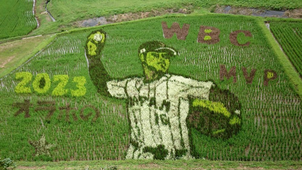 田んぼアートが久しぶりに復活。WBCでの活躍がよみがえる。見物客が絶えない。正に世界の大スター‼️今が見頃です。