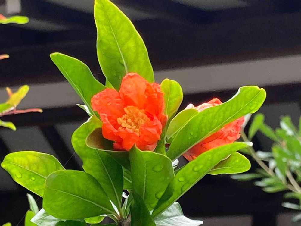 今日の花 ザクロ。お散歩中にこの花が目に入った時に、「あ!今日の花ザクロだ。」と思わずシャッターを押してしまいました。ザクロの花の時期って、5月〜7月って、だいぶ長いのですね。植物園ではずっと前に咲いた感じです。
