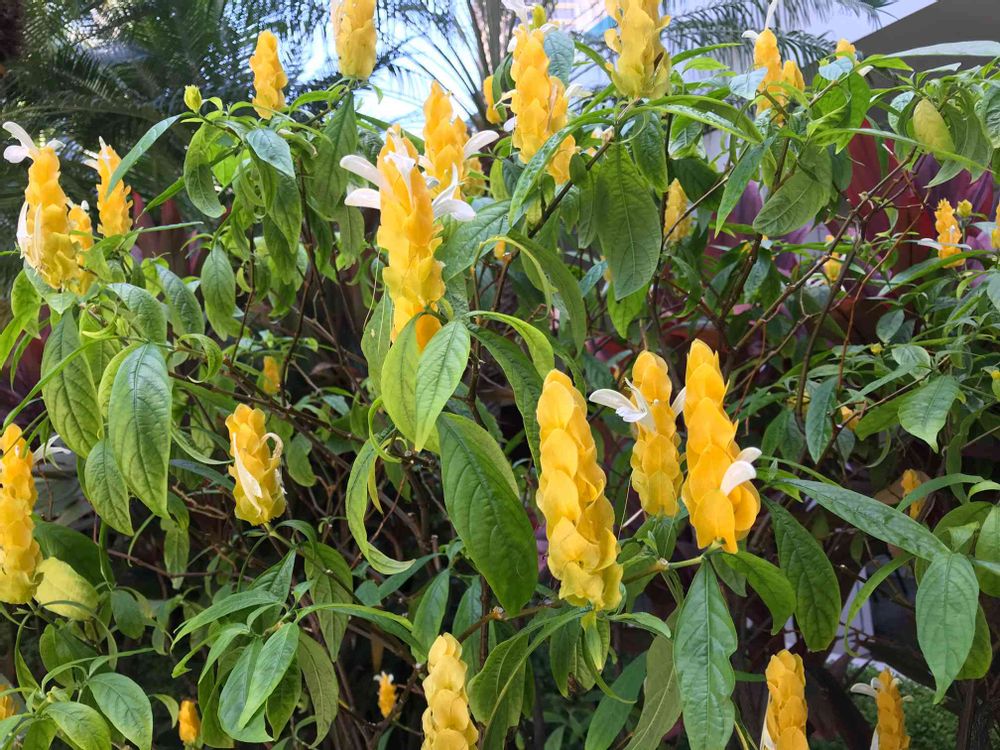 ハワイ旅行で撮影しました。黄色に白の花?面白いですね♪
