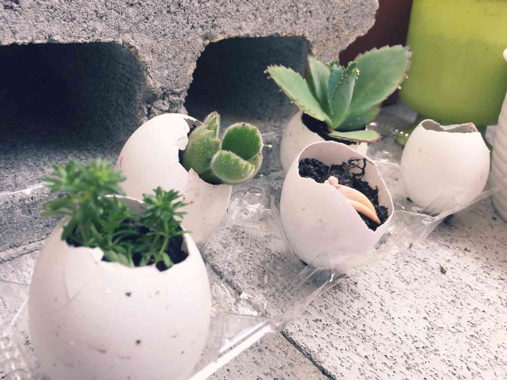 殻の白と、多肉の緑がきれいですね🍀私も玉子の殻ストックしてあります🎵\(^^)/