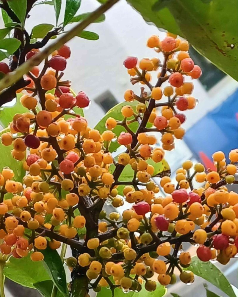 カポックに こんなビタミンカラーな実がたくさんできるとは😃知らなかったよ