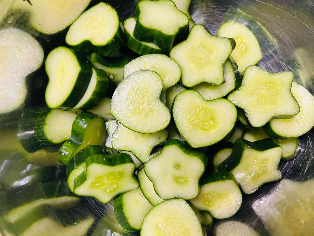 キュウリはあっという間に大きくなるので、型を何回も使い回していっぱいハートや星ができますよ⭐️