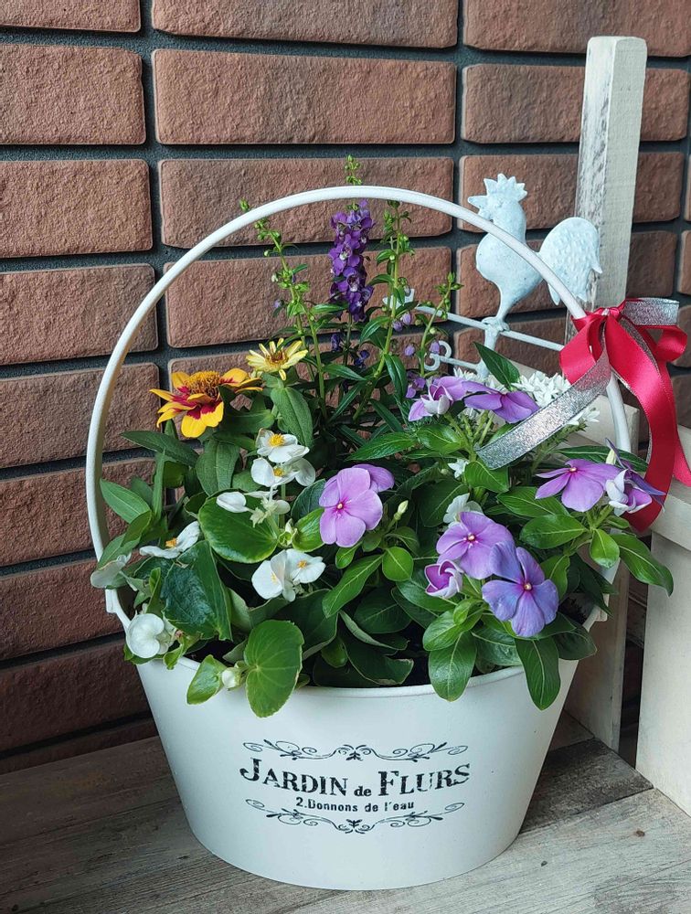 お店で売っていた寄せ植えが可愛かったので、ピックを足して、友人にプレゼントしました。
