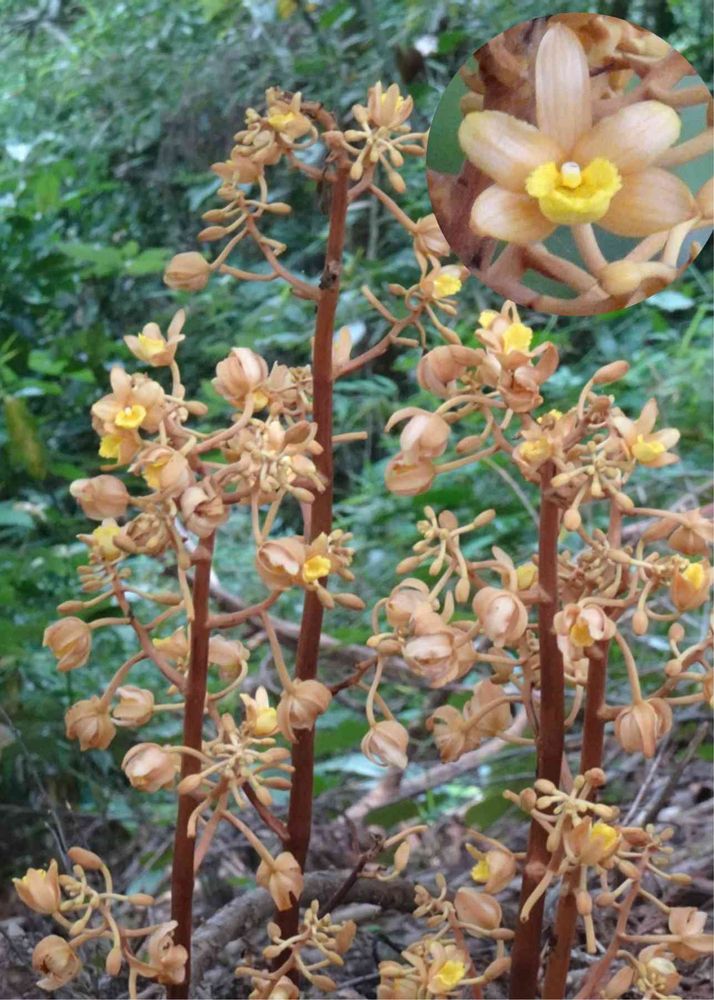 このツチアケビも先に投稿したショウキラン同様、葉緑素を持たない菌従属栄養植物です。
