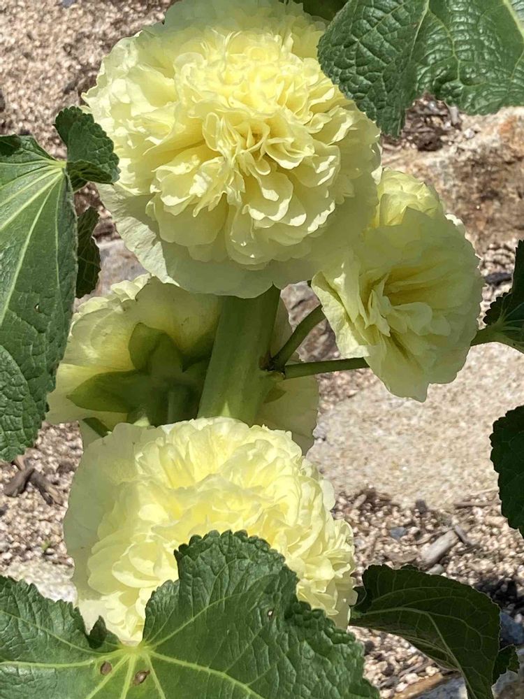 黄色い八重咲きのタチアオイ💛🌿、とっても珍しいかと…