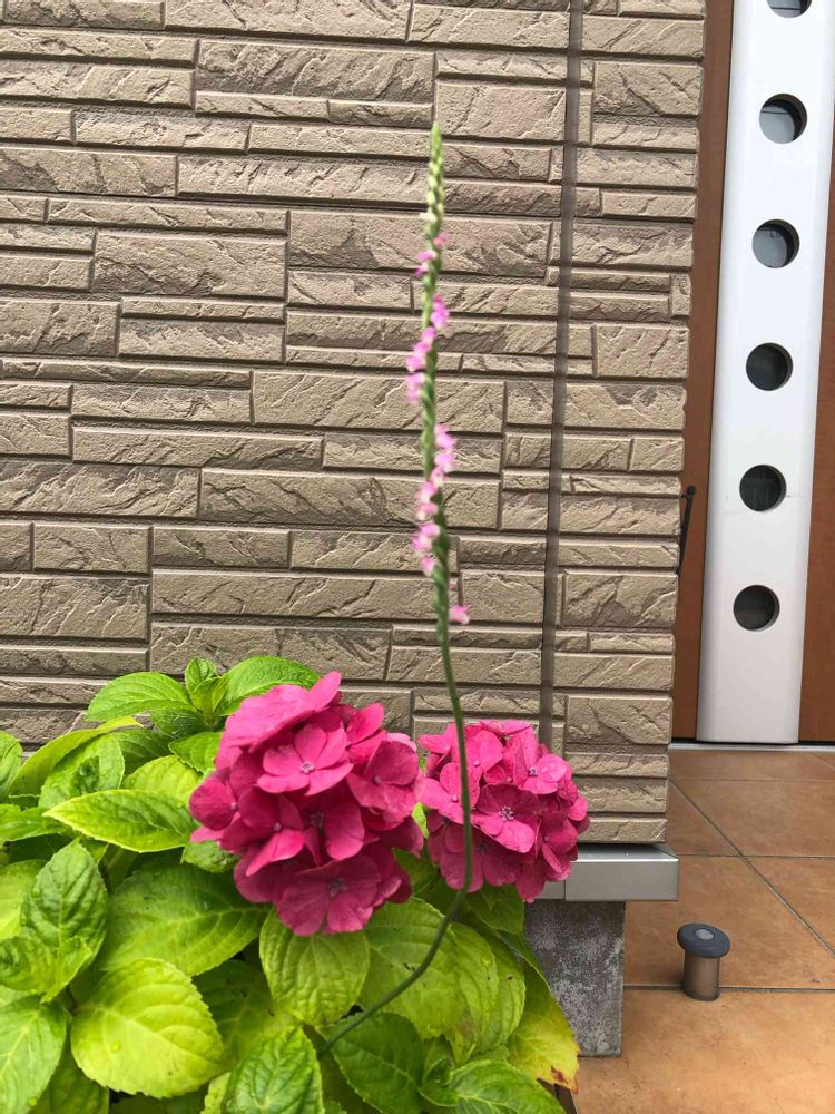 朝外に出るとお隣の紫陽花が綺麗に咲いていて、その間からなにやら細長いものを発見。