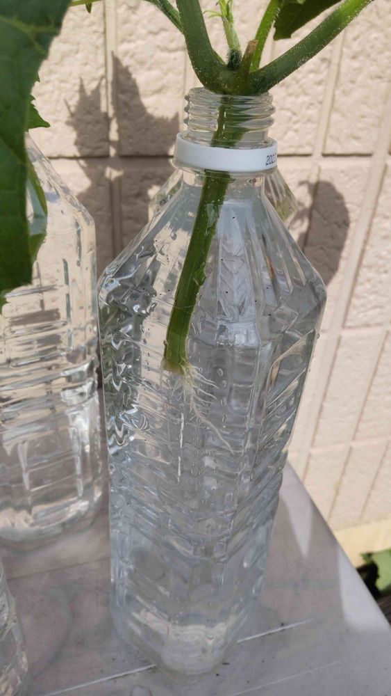 3本中、2本は畑で活着中、残り出遅れた苗の水替え、朝から気温が高過ぎ、お湯になる前に日陰に避難させる様です。😃☺️