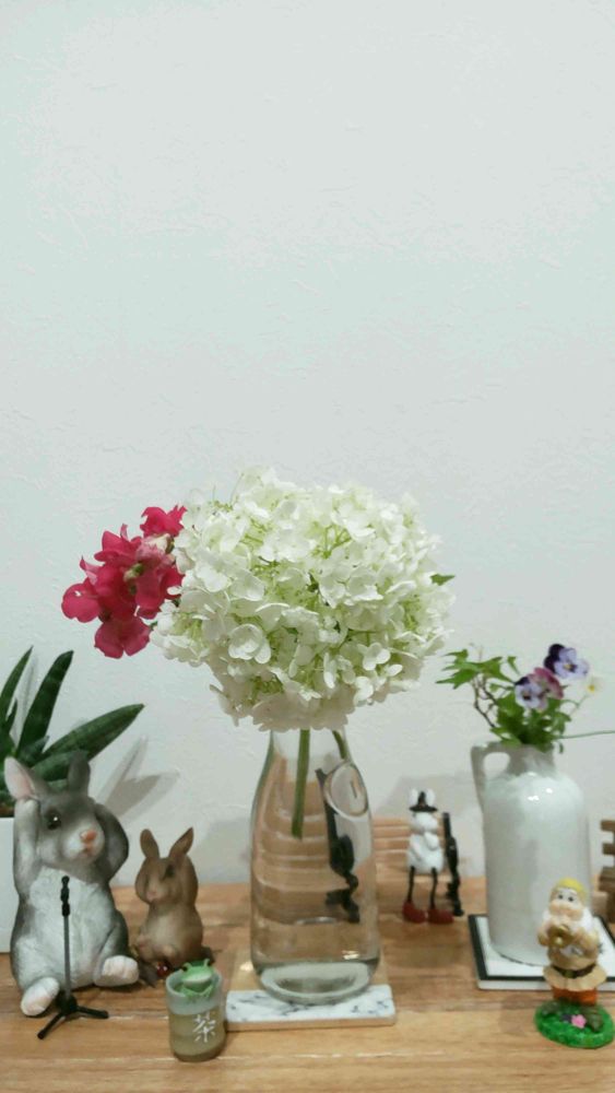 アナベルと金魚草 紅白で良いですね🤍❤️