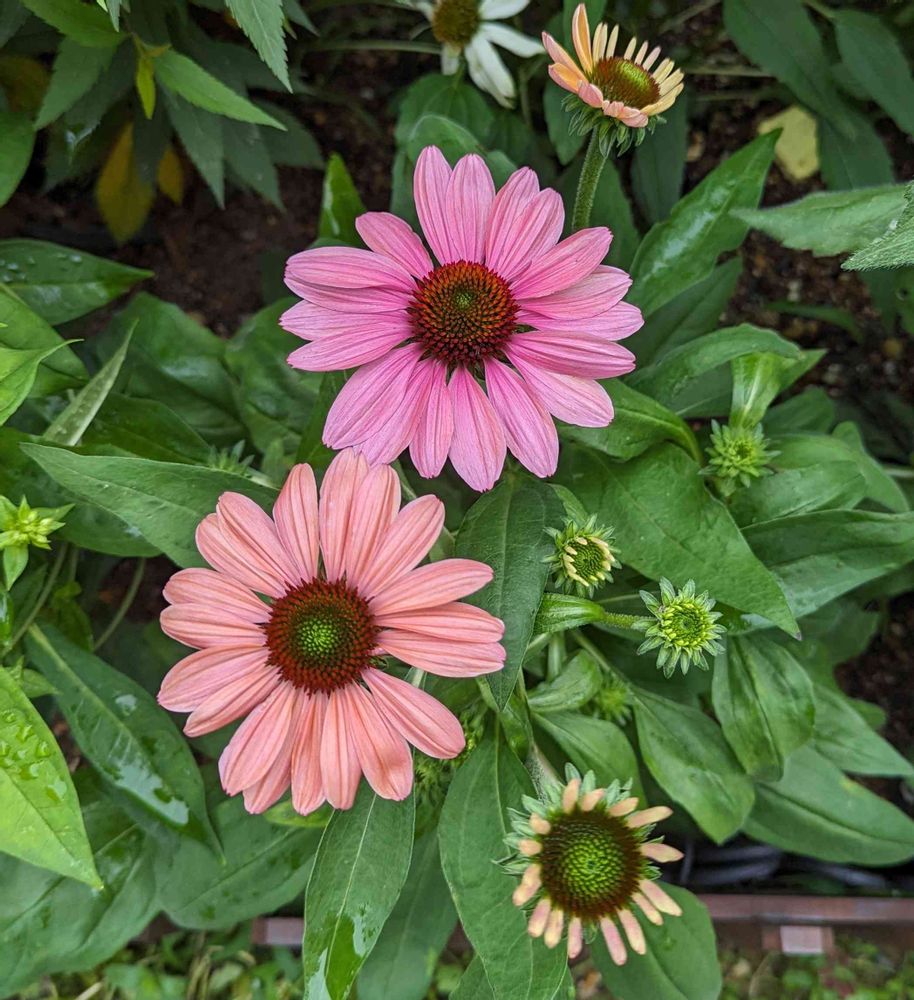 雨続きでなかなか良いお顔が撮れませんが、昨年秋に購入したエキナセアピンクパールが咲いて来ました❁