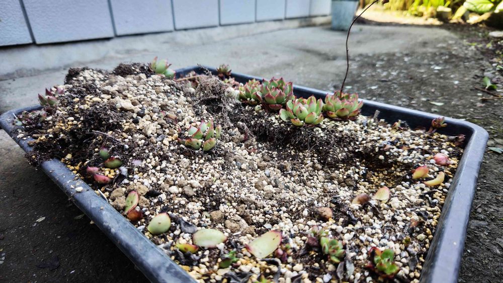 時折、植えたての多肉が土に...