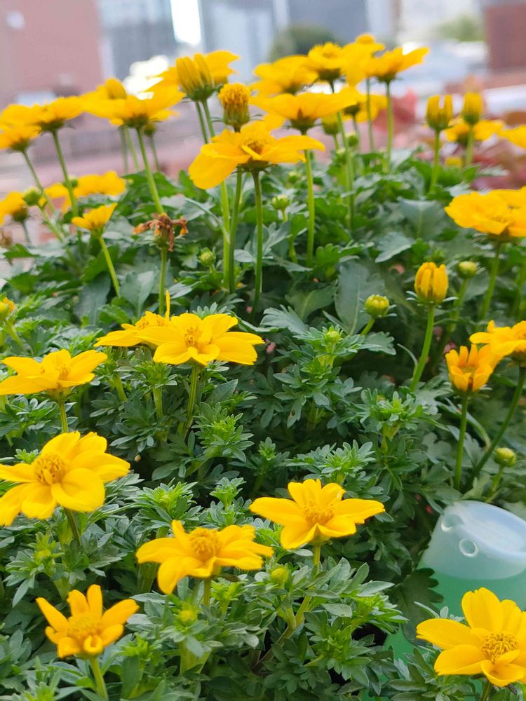 黄色い花びらに真ん中も黄色いこのお花がとても新鮮で、大好きなお花です🌼