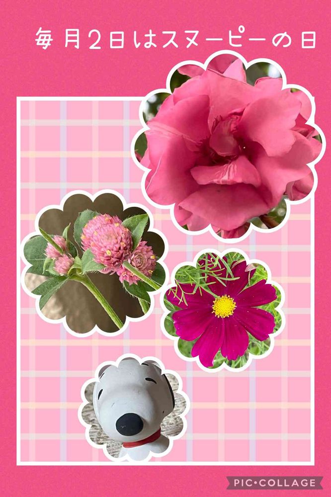 ピンクのお花とスヌーピーのコラボ😊💕ワカイイです