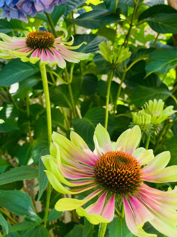 ほんとうは、日向が好きな子なのに、我が家は木陰、その上大きくなった紫陽花が影をつくってしまったせいで、花数少ないけど、日陰でもこの色にが出るって、エキナセアさん、優秀です💪