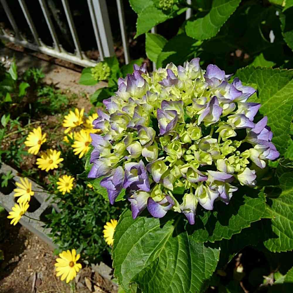 わが家の紫陽花もやっと色づき始め、楽しみにしていたオステオスペルマムとの反対色コラボも実現間近です✨💛💙✨