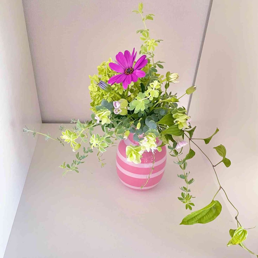 ピンク色のストライプがかわいく効いているこの花器は、ケーラーオマジオでしたっけ?✨✨🙋♀️