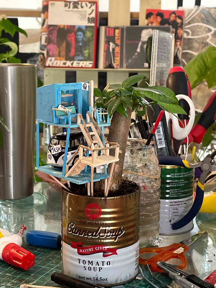 百均やら、 ホームセンターで売ってる 一番小さい観葉植物に、 ちっさい家、作ったりしてます。 ちっさい家用の家具も作ります。 窓にお弁当のふたとかのプラ貼って ガラスっぼく…電気もつきます💡
