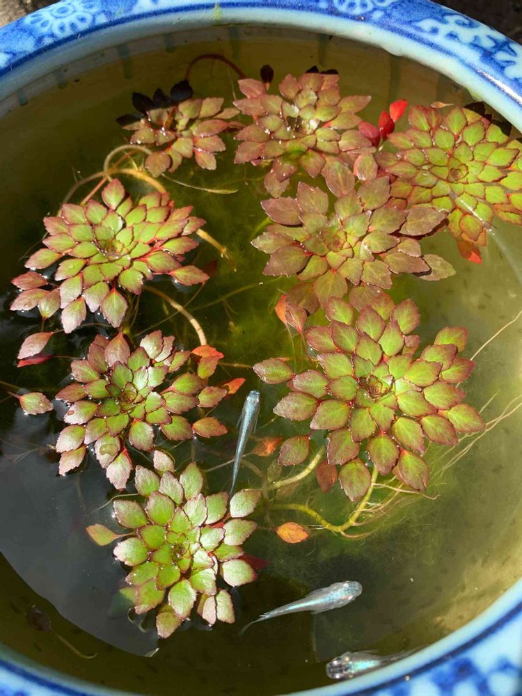 メダカ鉢に浮いてるのは、水草ですか?ホテイアオイくらいしか知らず😂