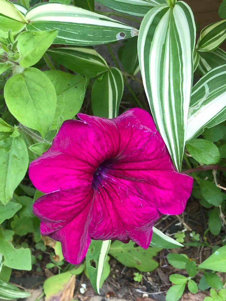 ペチニアだと思って居ましたが、咲いたら花が大きくて気づきました。✌️ 雨で傷まない様に植え替えします🤗