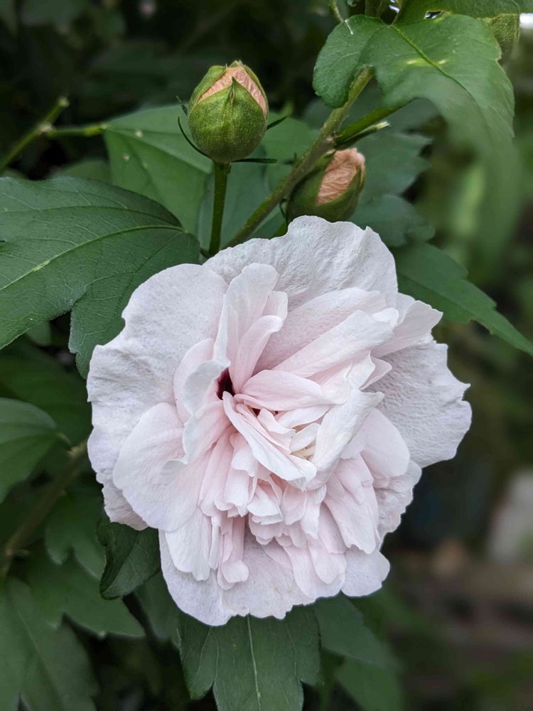 八重のムクゲが咲き始めている〜✌️😄🎶