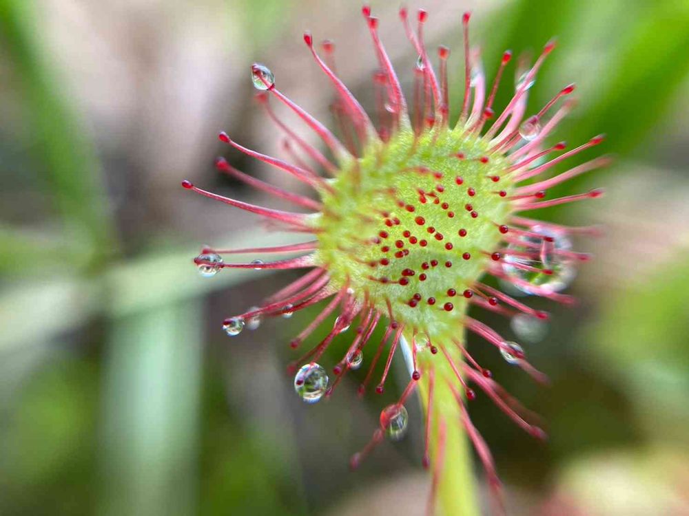 モウセンゴケは先端に虫をくっつけて虫を捕まえる食虫植物だそうです