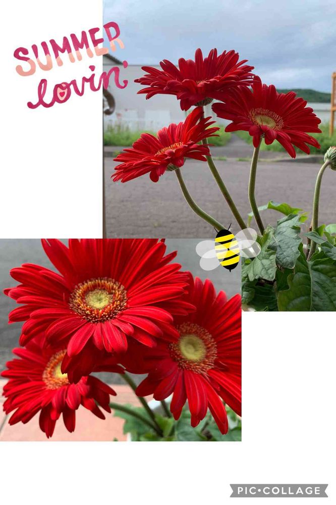 素晴らしく真っ赤が冴えてるガーベラですね。🌼