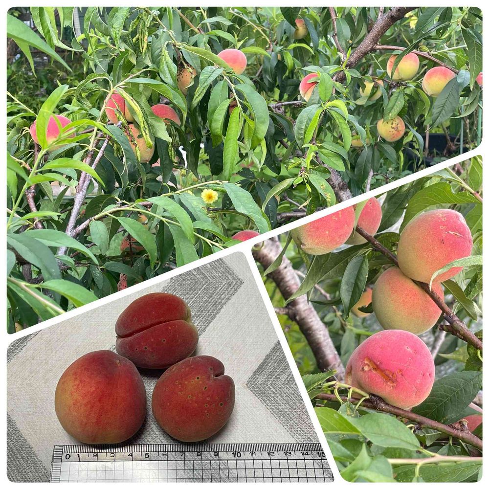 今年はキズがついて食べられているものもありますが、綺麗な物もあったので初収穫しました🍑😊