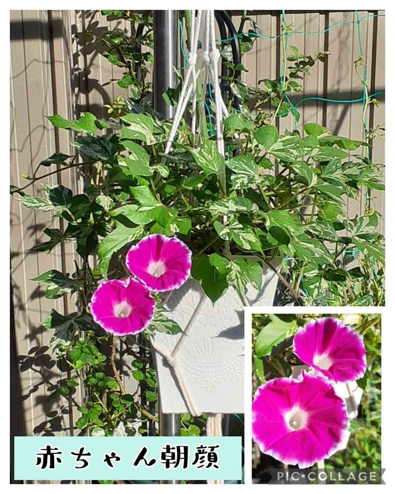 赤ちゃん朝顔が2つ咲いてました✌️✌️☺☺