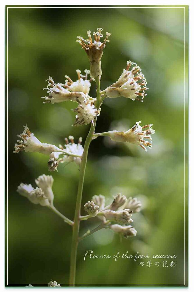 山野草エリア、ヤブレガサに花が咲きました。
