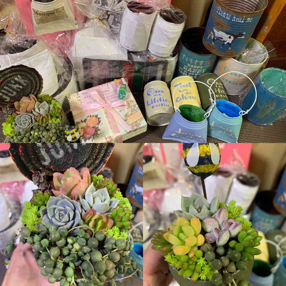 寄せ植えの仕立て直しになかなか手が回らず…お一人様のメンテナンスも結構大変で…リメ缶•鉢作りや寄せ植えから遠ざかっていたんですが、久しぶりに凄く楽しくて