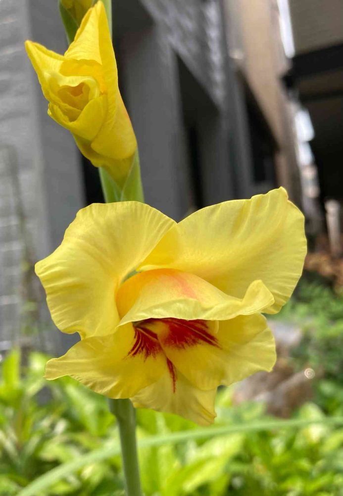 ビタミンイエロー、グラジオラスが我が家の小さな庭で咲き始めました🤗😽