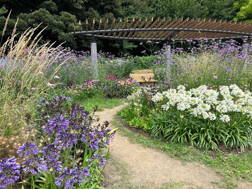 ここでもアガパンサス🤍💜が印象的に使われてました。背が高い紫は三尺バーベナ。