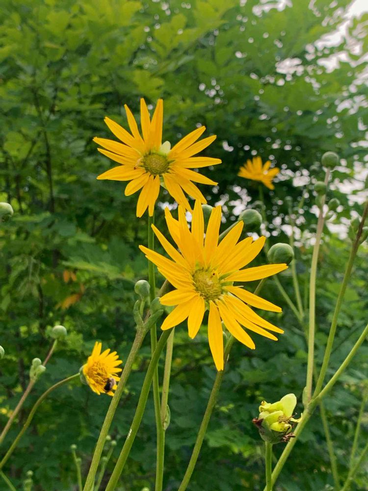 ひまわりの仲間みたいですね。とっても背が高いです。ひまわり畑いいですね😊見てみたいです💓