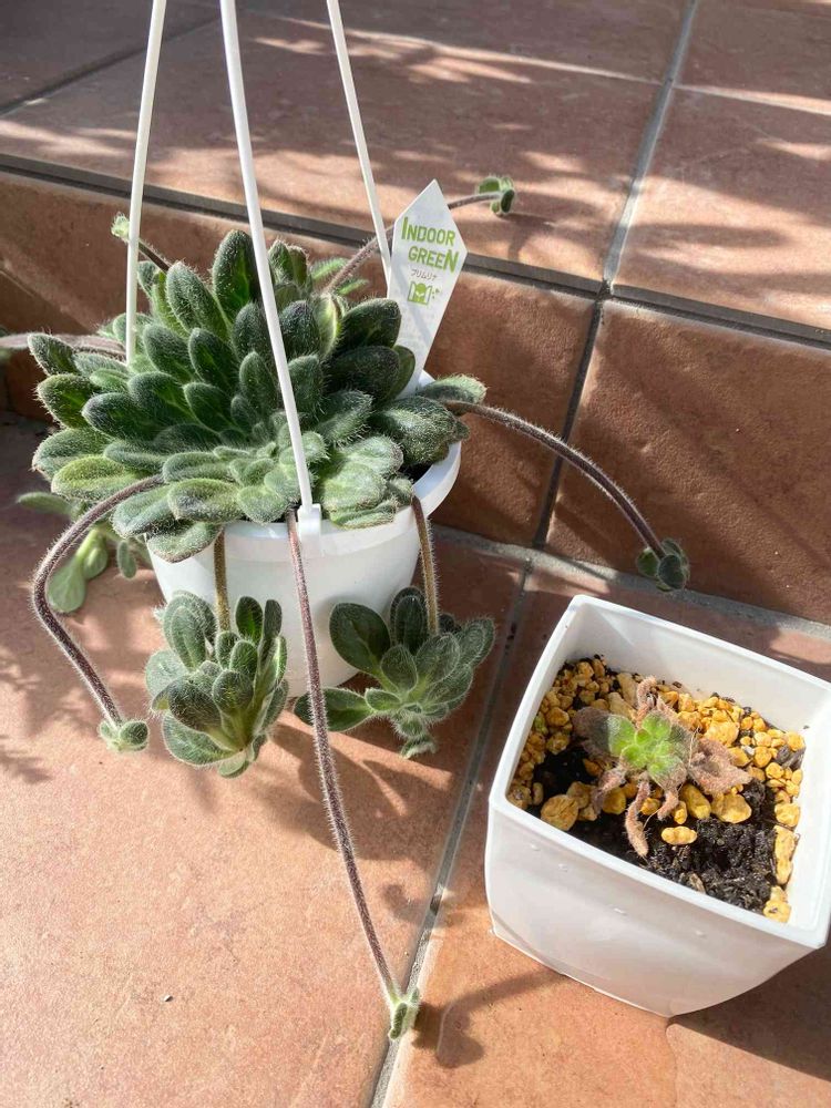 初見の植物です ランナーの先を土の上に乗せてたら 根がでるのかなぁ( ́•ૢ⌔•ૢ ̀)♡可愛いです