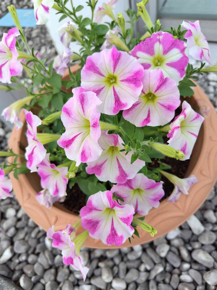 お友達から頂いたペチュニアの鉢 モリモリになって花がさきました∧_∧