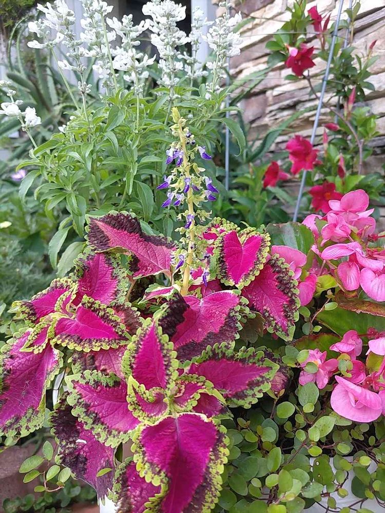 コリウスに可愛い紫のお花とベコニアも咲いてきました🥀