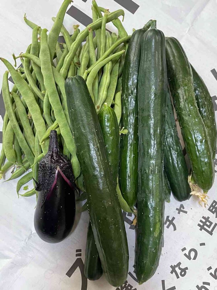 🍆一個 🌼きゅうり8本インゲンたくさん