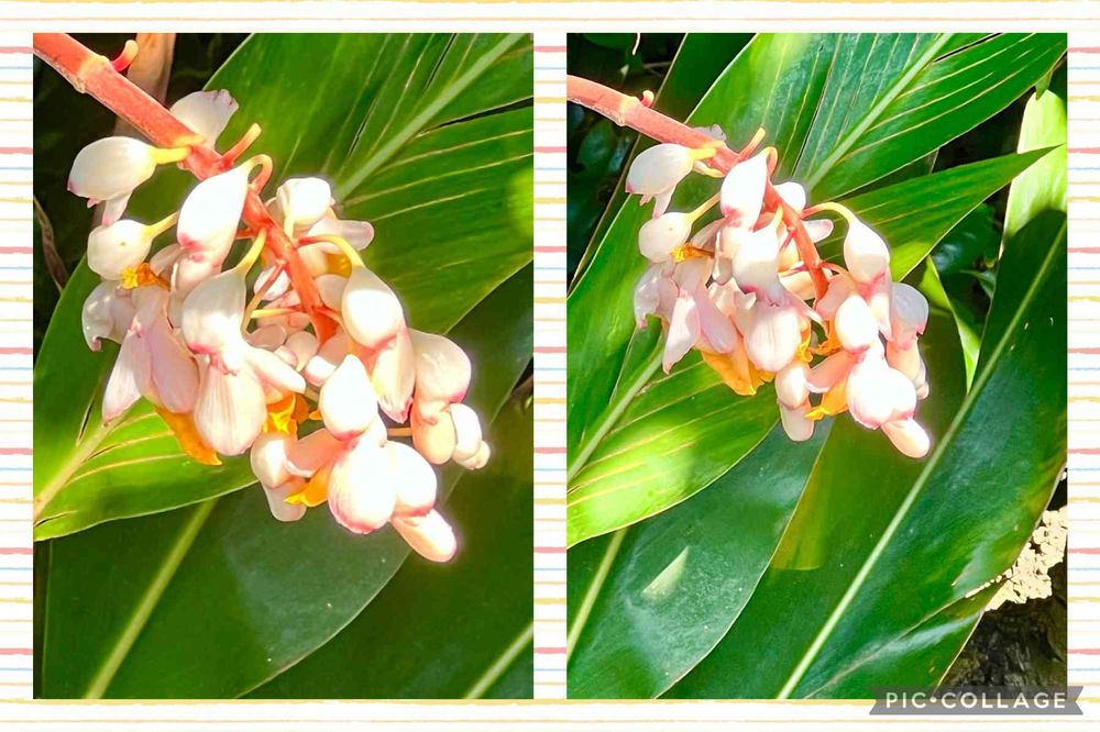 駅前の植え込みの中に月桃が咲いていました。