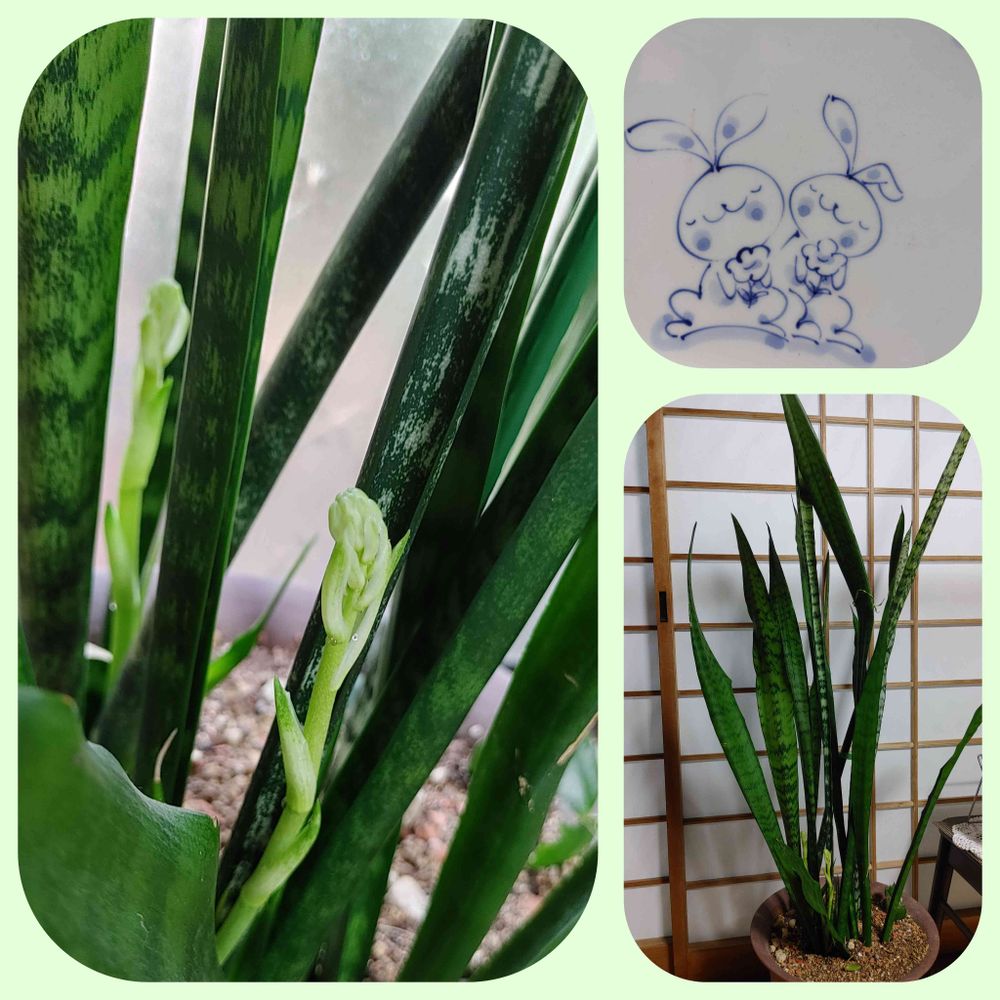 サンスベリアに初めて蕾がつきました。二つも付いていて感激🙌