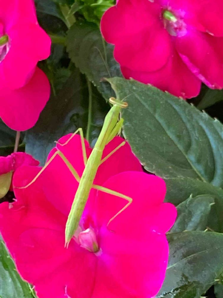 赤ちゃんカマキリ、サンパチェンスのお花を観に来たんですね🎶