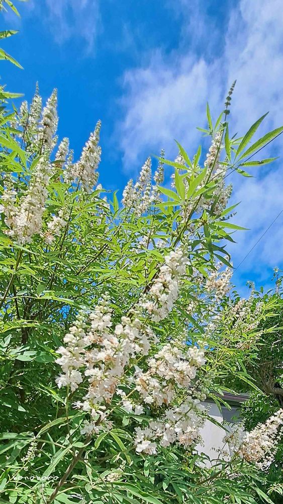 青空に白いお花が爽やか\( *´ω`* )/〜